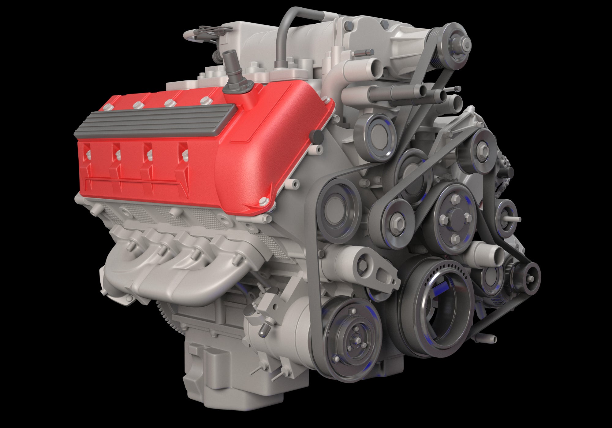 Animated, fully detailed 3d model of V8 engine cutaway with gasoline ignition.